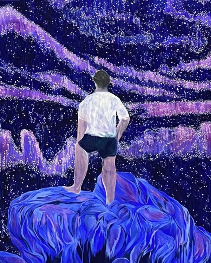 La mise en photographie homogénéise clairement les différences personnelles. Les garçons sont délestés de toute reconnaissance faciale, les torses sont interchangeables, très similaires. Les corps minces, blancs. Par là, l’artiste questionne le genre, ses codes, le droit à la différence, l’homogénéisation de nos images, celles des réseaux et de nos vies. Rien n’est naïf ! Le traitement des couleurs et des textures le montrent bien.