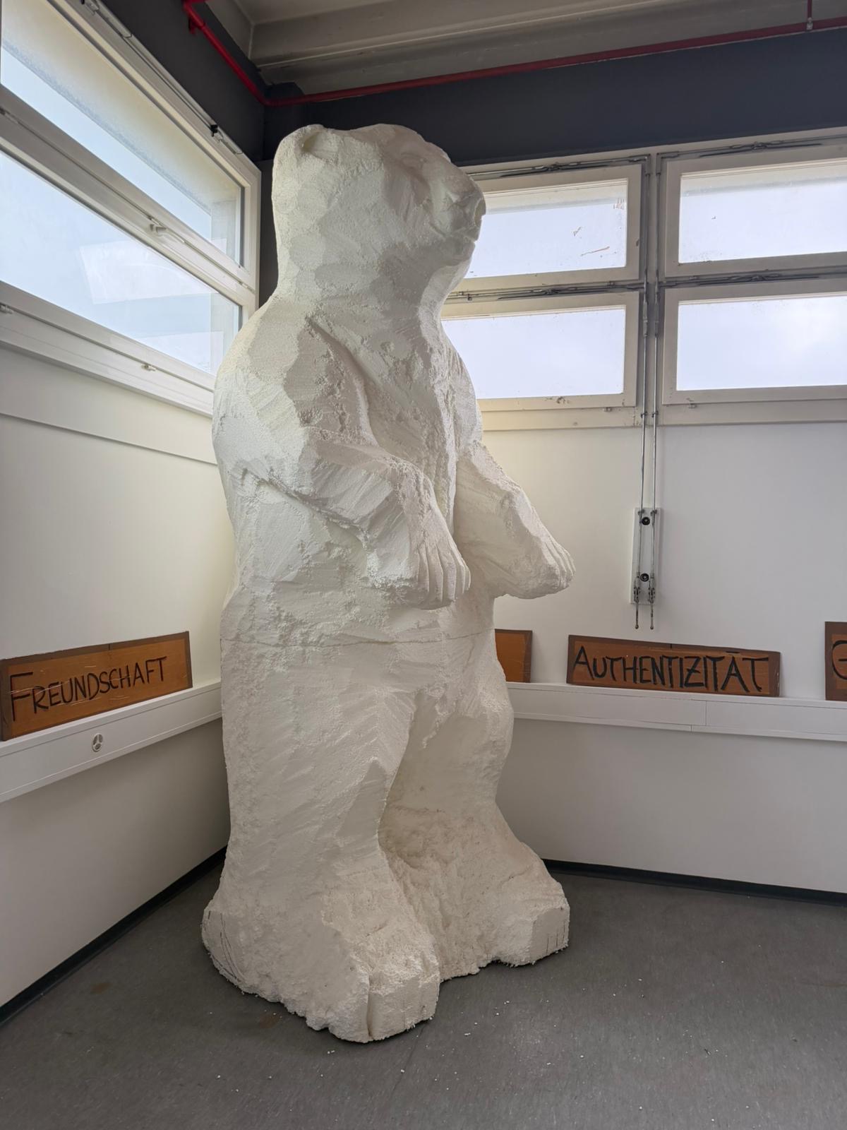 Ensemble, L’Ourse, les pancartes de Hirschhorn et les affiches de Tillessen forment uneconstellation temporaire. Un retour hivernal, avant que l’animal ne poursuive sa route. Car ce projet ne se conçoit pas comme un point final, mais comme un déplacement.L’Ourse voyagera, portant ses messages — silencieux, ambigus, dérangeants.